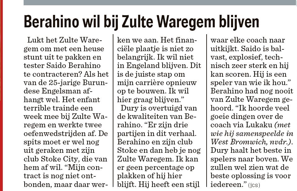 “My contract has not yet been terminated, but we are working on that. The financial picture is not that important. I don’t want to stay in England. This is the right step to rebuild my career. I want to stay here [Zulte Waregem],” Berahino was quoted as saying by Het Nieuwsblad.